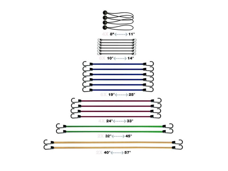 General Grade Bungee Cord Assortment – 6 Sizes, 24-Pack,