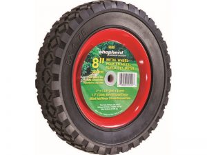 The Shepherd Hardware 9599 8-Inch semi-pneumatic rubber replacement tire with steel hub with ball bearings and 1-3/4-Inch ribbed tread for more demanding applications.
