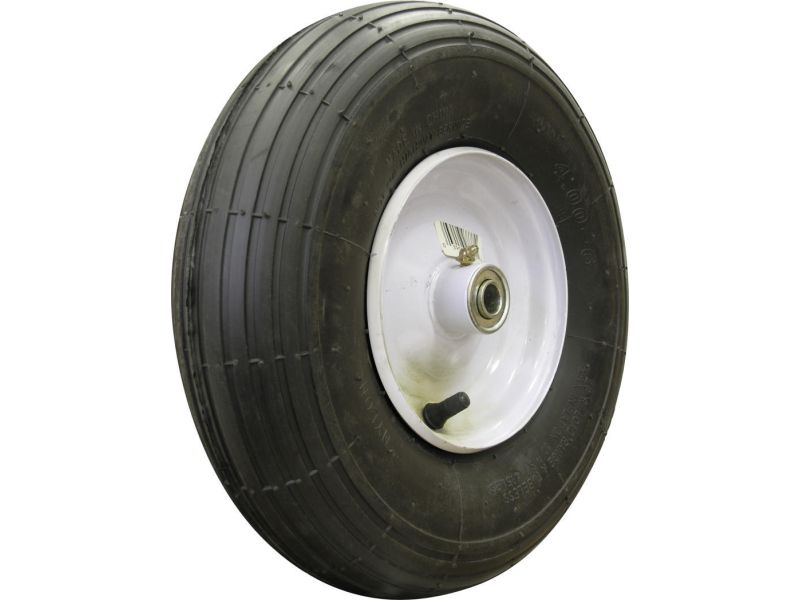 96064.80/4.00-8-Inch Pneumatic Wheelbarrow Tire, 16-Inch, Ribbed Tread, 6-Inch Centered Hub, 5/8-Inch Axle Diameter, Ball Bearing