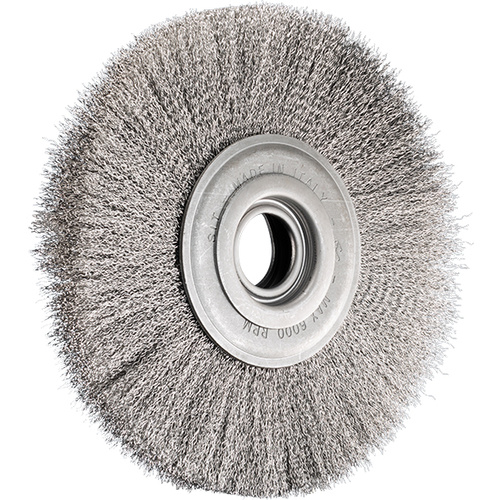 Ideally used on a bench grinder for light duty surface deburring & polishing. Also suitable for removing rust, glue, rubber or residue from metal surfaces