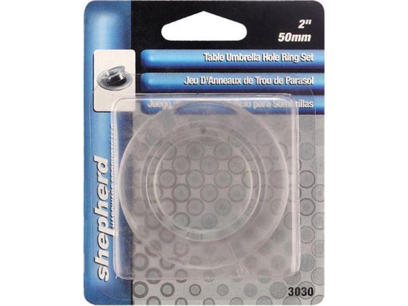 The Shepherd Hardware umbrella hole ring prevents the patio umbrella from swaying, wobbling, and leaning. It also eliminates scratches and dents on the umbrella pole cause by friction with the patio table. Also includes a solid plastic cap for covering table gaps when the umbrella is not in use.
