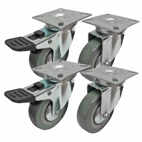 This castor pack includes two swivel castors and two swivel brake castors, PVC castors offer low rolling resistance.