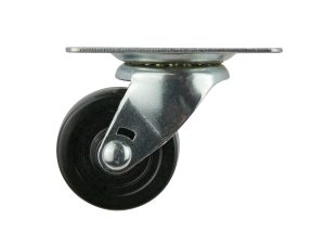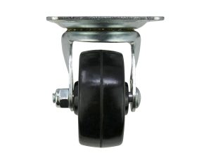 - 2-1/2 inch diameter black soft rubber wheel with ball bearing swivel and plate mount