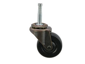 - 2 inch diameter soft black rubber wheel with double ball bearing swivel, friction stem mount and copper oxide finish