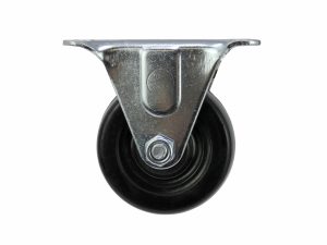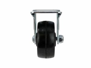 - 2 inch diameter black soft rubber wheel with rigid plate mount