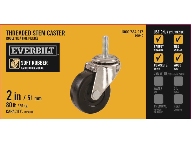 The Shepherd Hardware 2 inch soft rubber grip stem casters give mobility to heavy loads on smooth, hard surfaces and finished concrete floors where quiet movement and floor protection are major considerations.
