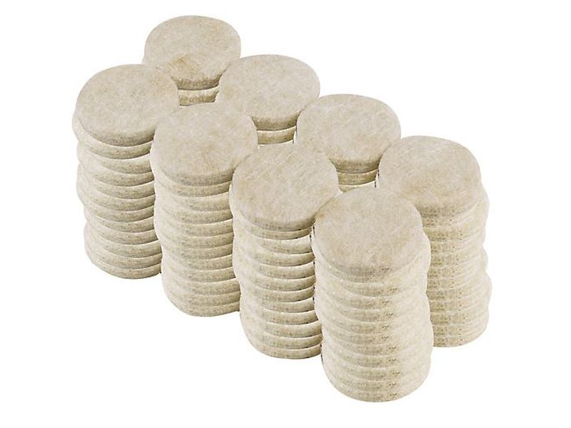 The Shepherd Hardware 96 Pack, 1-inch felt pads for use on wooden legs of chairs, tables and other furniture. For installation prepare surface by cleaning and lightly sanding to ensure better adhesion of the pads. Protects furniture and floor surfaces against marring and scratches. Reduces noise and friction while moving furniture with ease. Best on hardwood and laminate, ceramic tile, terrazzo, linoleum, vinyl, and marble floor surfaces.
