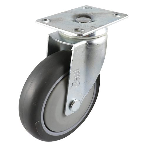 High quality Zinc Plated castor with 125mm grey rubber wheel and 100Kg capacity. Soft grey rubber is non-marking and quiet.