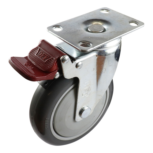 High quality Stainless Steel castor with 125mm grey urethane wheel and 100Kg capacity. Soft grey urethane is non-marking and lasts longer than rubber.