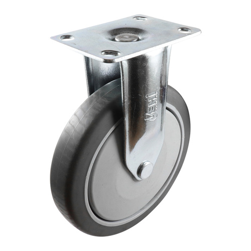 High quality Zinc Plated castor with 150mm grey rubber wheel and 120Kg capacity. Soft grey rubber is non-marking and quiet.
