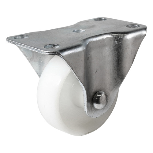 High quality industrial strength 63mm nylon castor with 85Kg capacity. White Nylon is durable and ideal for warehouse and workshop environments, it also has a moderate chemical resistance.