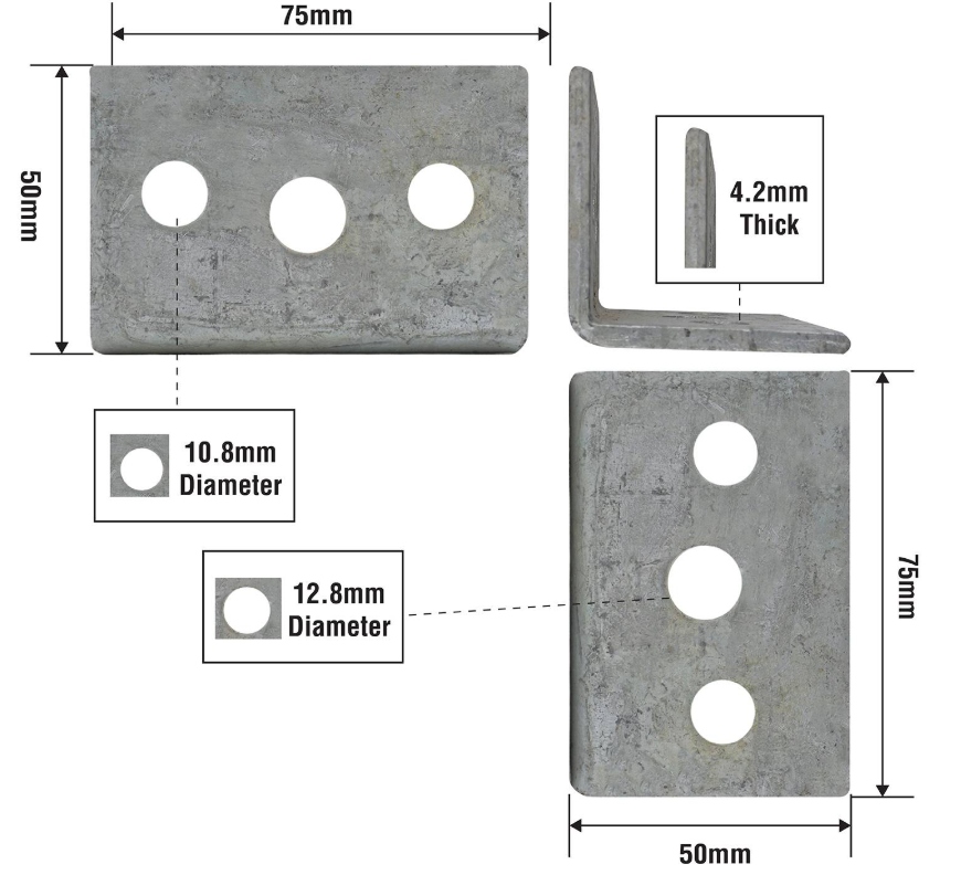 ANGLE BRACKET 50X50X75X4MM HDG is a heavy duty angle bracket designed for secure mounting in demanding DIY, industrial and construction projects. Manufactured in robust steel and finished in hot dipped galvanised coating, this bracket offers exceptional durability and reliable load-bearing performance. Its precise dimensions ensure versatility in various applications, while a load capacity of up to 600 kgs provides practical assurance for safety-critical tasks.