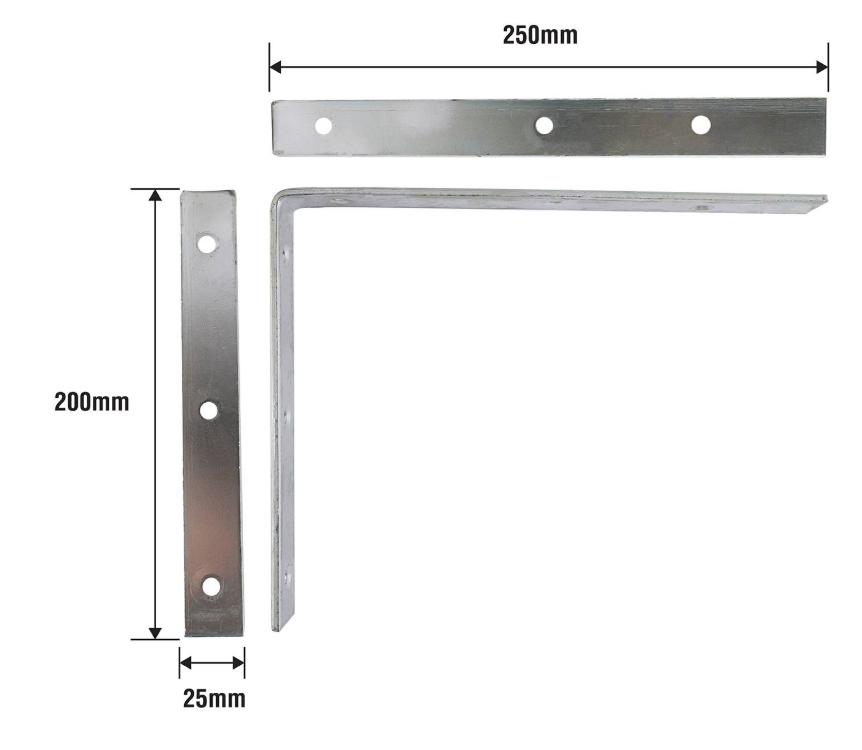 ANGLE BRACKET - ZINC PLATED 250x200x25x4.5mm