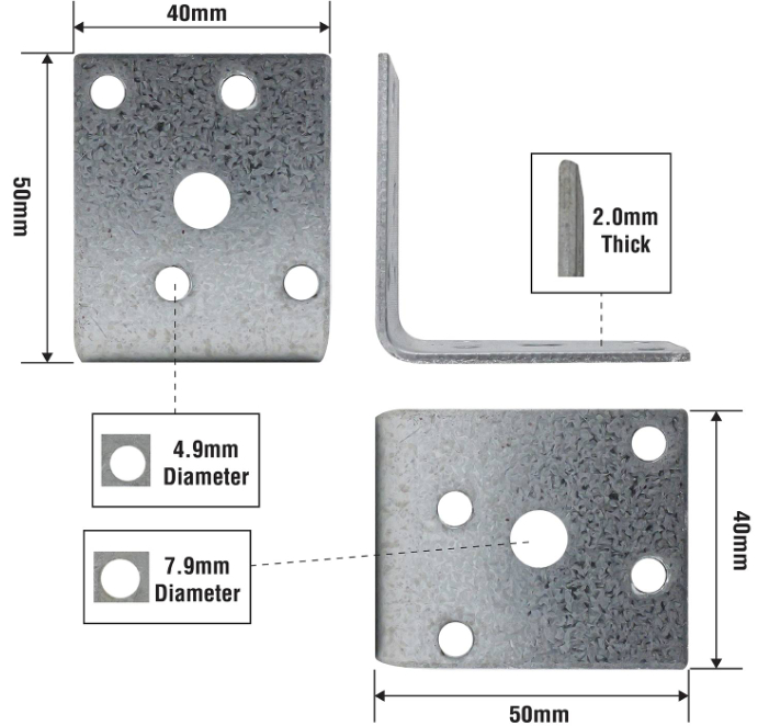 Constructed from galvanised steel, this reinforced bracket measures 50x50x40x2mm and is ideal for applications requiring reliable support, such as shelving and frames. Its robust structure ensures durability under demanding conditions while the eight-pack offers consistency and ease of ordering. This product combines precise engineering with practical functionality for both retail and online buyers who value technical excellence.Detailed