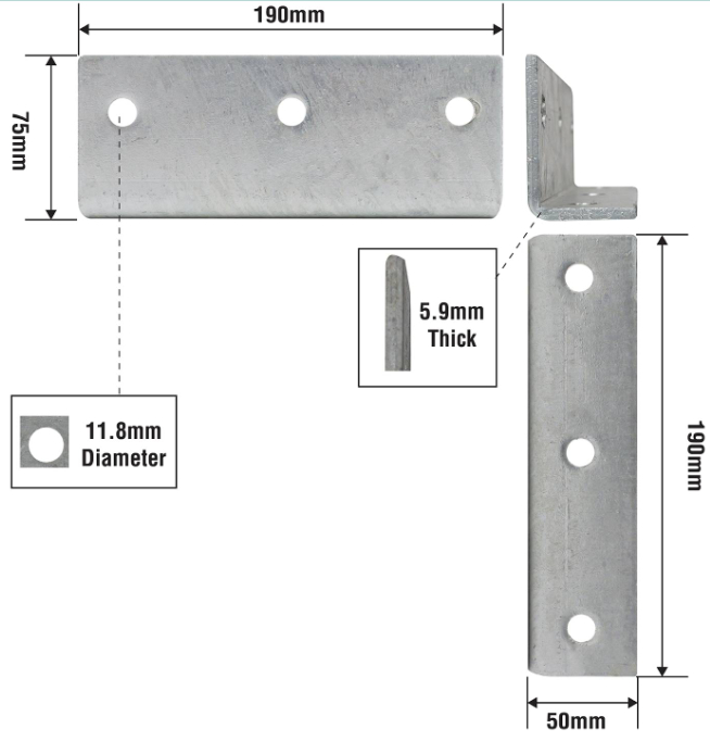 Heavy duty angle bracket is engineered for robust DIY and construction applications. Made from hot dipped galvanised steel, this bracket offers durability and corrosion resistance for long-lasting performance. Its precise dimensions of 190x75x50x6mm ensure secure fixing and reliable structural support in demanding projects. Ideal for both domestic and commercial installations, it provides a practical solution for reinforcing joints and adding stability where heavy duty reinforcement is required.Detailed