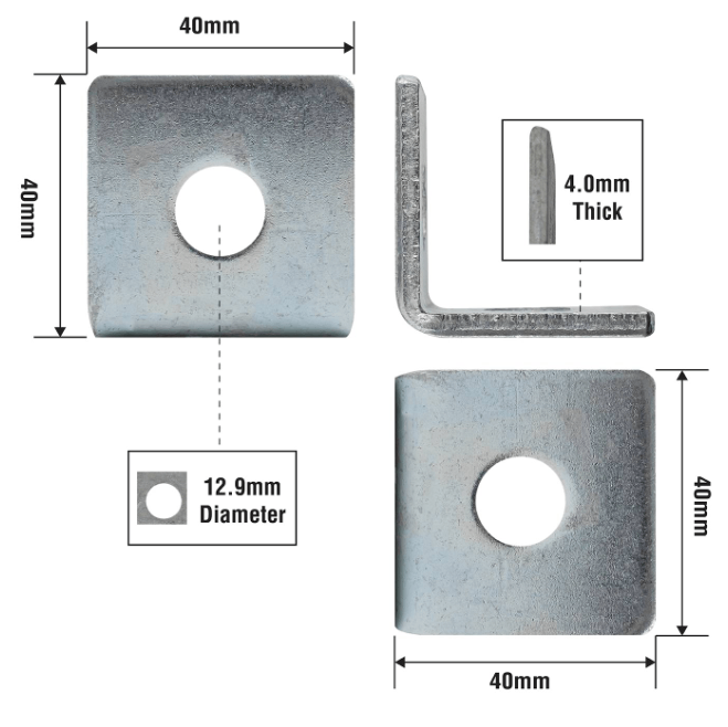 This is a heavy duty steel angle bracket engineered for demanding DIY projects and structural reinforcement. Its zinc plated finish provides enhanced corrosion resistance while ensuring longevity during extreme use. With a robust 500‐kilogram load capacity and precisely sized 40x40x40 millimetre dimensions, this bracket is ideal for both residential and commercial applications. Its compact yet strong design offers DIY enthusiasts a reliable and practical fastening solution.Detailed