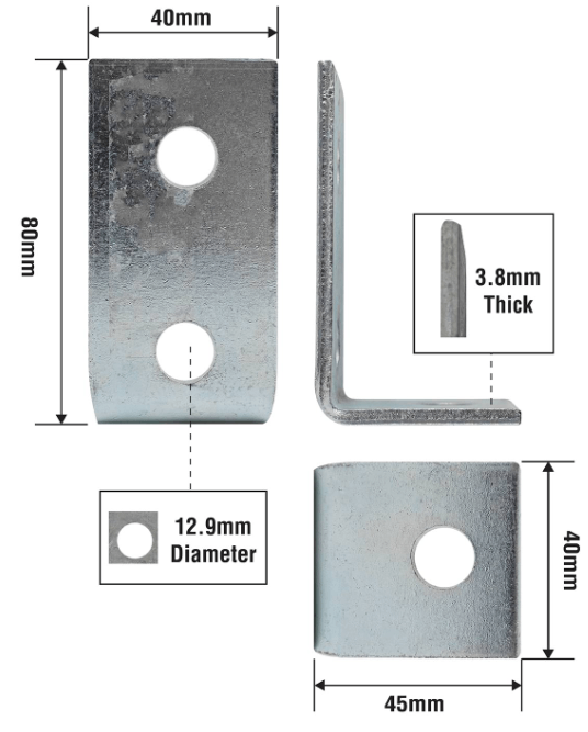 This heavy duty angle bracket is engineered to provide reliable fixed corner support for various DIY and construction projects. Made from sturdy steel with a zinc plated finish, it offers excellent corrosion resistance and can support up to 150 kg. Weighing only 134 grams, the bracket ensures easy handling and installation, making it a practical choice for both domestic repairs and commercial applications.Detailed