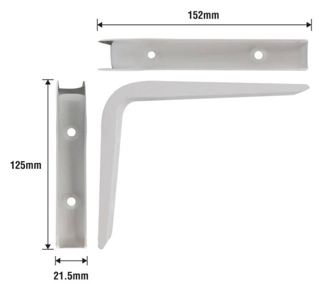 This robust light duty angle bracket is crafted from quality steel in a clean white finish. It is designed for DIY enthusiasts who need reliable support for light construction and repairs. With a load capacity of 35kg, its precise 125x150mm dimensions ensure accurate mounting for fixtures and fittings. Ideal for both indoor and outdoor projects, it offers a dependable balance between strength and ease of installation.Detailed