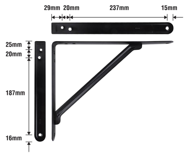 This is a sturdy light stayed bracket designed to secure and support lighting or fixture installations in home and workshop projects. Made from high-grade steel, it provides a reliable load capacity of 50 kgs. Its compact dimensions and sleek black finish offer practical support and precise alignment for technical DIY applications.Detailed