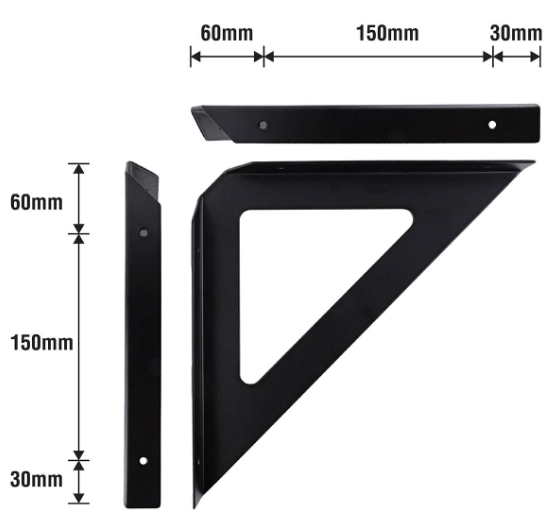 This triangle bracket is engineered for DIY enthusiasts seeking reliable load-bearing support. Made from robust steel and finished in black, it provides precise dimensions ideal for modern structural applications. With a load capacity of 100 kgs and a lightweight design of 408 grams, this bracket is perfect for projects requiring secure, practical fixing solutions.Detailed