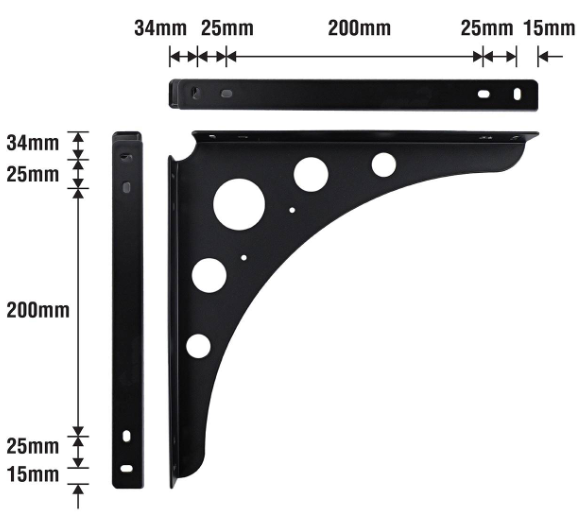 This is a robust steel euro bracket designed for secure mounting and reinforcement tasks in DIY projects. With a load capacity of 100 kgs, this bracket offers dependable structural support for various applications. Its precise dimensions and black satin finish ensure both durability and a professional look, making it an invaluable addition for anyone undertaking home improvement or construction work.Detailed