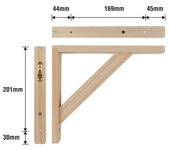 This is designed for DIY enthusiasts seeking robust support for various applications. Measuring 230x260x30x15mm, this bracket is made from durable raw finish pine, making it an ideal choice for shelving, furniture reinforcement, and more. With a load capacity of up to 20kg, it offers the strength and reliability needed for a wide range of projects.Detailed