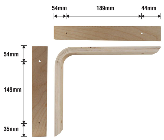 The angle bracket is a robust plywood support designed for a variety of structural applications. Measuring 240x290x40mm, it offers a reliable load capacity of 20kg, making it ideal for DIY enthusiasts involved in carpentry or home improvement projects. Its raw finish allows for easy painting or staining to match your decor, providing both functionality and aesthetic flexibility.Detailed