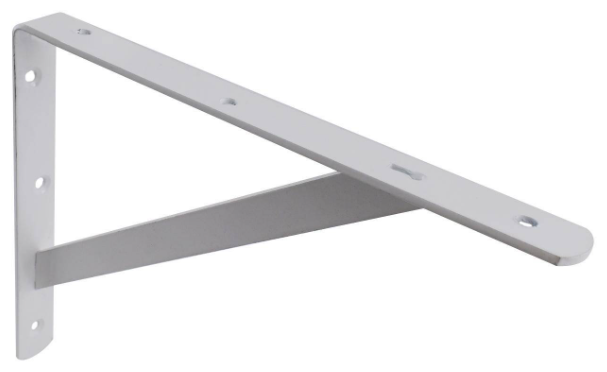 The Straight Stayed Bracket is a robust steel mounting bracket designed for secure DIY applications. Its precise dimensions and load capacity make it ideal for supporting shelves, cabinetry, or structural elements in projects requiring dependable support. This white bracket offers practical, technical reliability for both retail and online buyers with an eye for quality hardware.Detailed