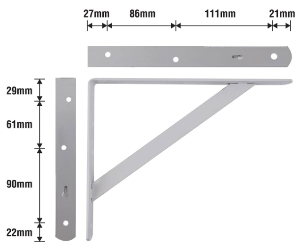 STRAIGHT STAYED BRACKET - WHITE 200x250x25x3.5mm