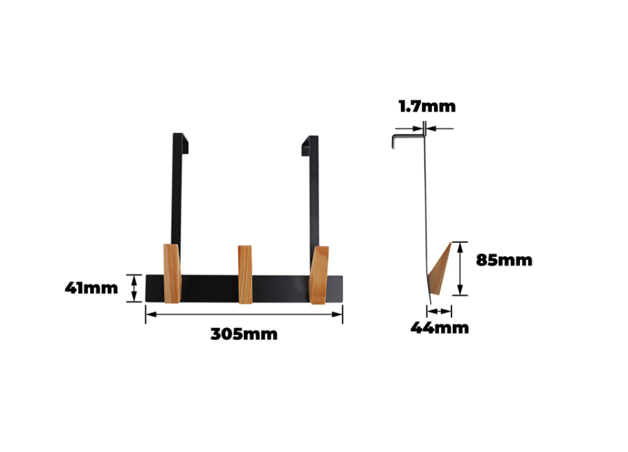 HOOK OTD 3 Timber wedge hooks BLK is a versatile over door hanger designed for practical DIY use. Its robust construction utilises pine and steel to provide secure, reliable support for hanging coats, towels or accessories without wall damage. Ideal for workshops and home settings, these hooks offer efficient storage solutions. The design combines functionality with aesthetic appeal, making it a valuable addition for those seeking durable, easy-to-install home organisation tools.Detailed