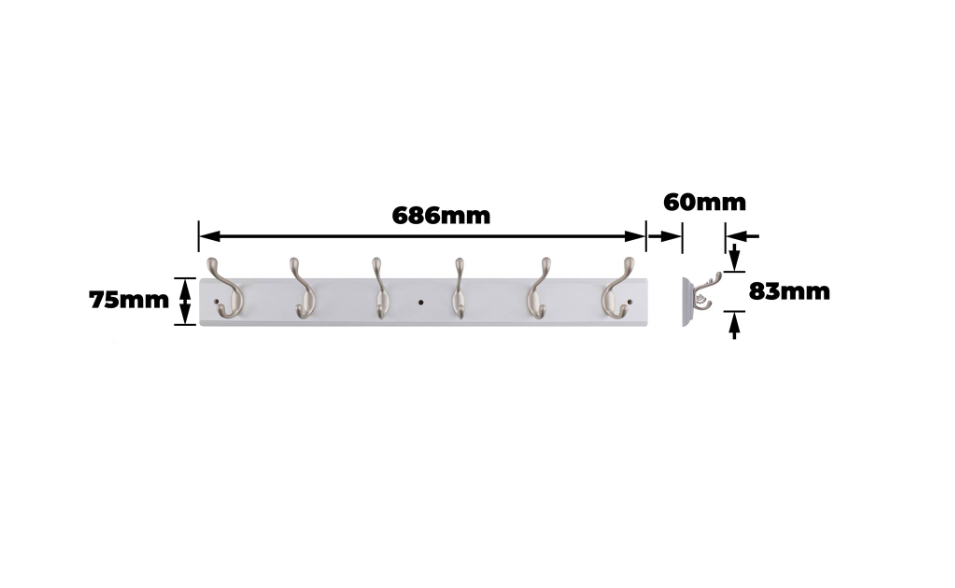 Key Features:- Six robust satin chrome hooks for secure storage of various items