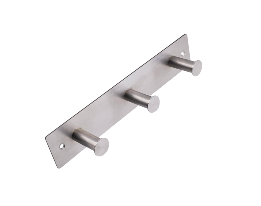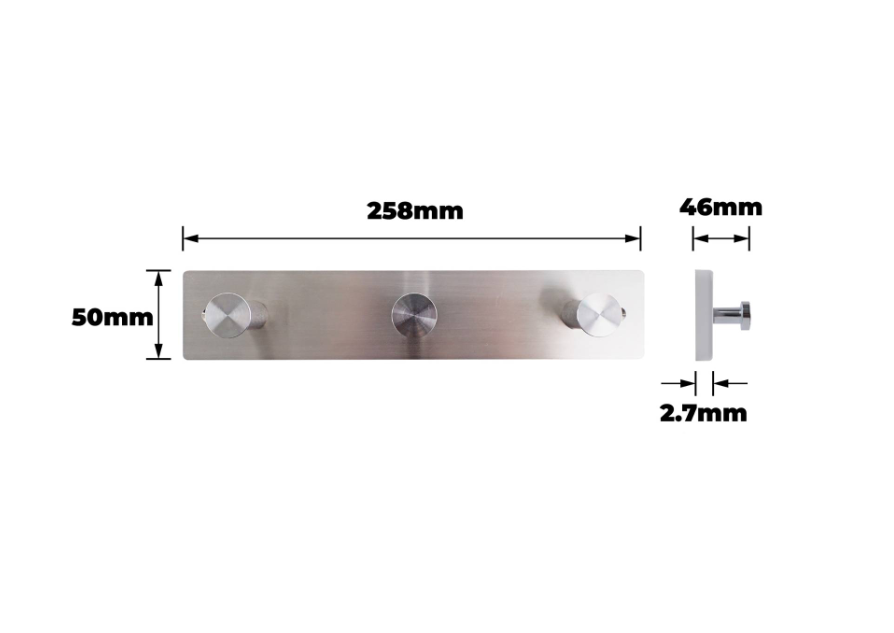 HOOK STUD RACK 3 STUD SC is a robust storage solution designed for DIY enthusiasts. The rack features a satin chrome finished board and hooks made from stainless steel and EVA, providing a durable and stylish option for hanging tools, accessories, or household items. Its thoughtful design ensures ease of installation and effective organisation in garages, workshops or entryways, making it a practical choice for a variety of applications.Detailed