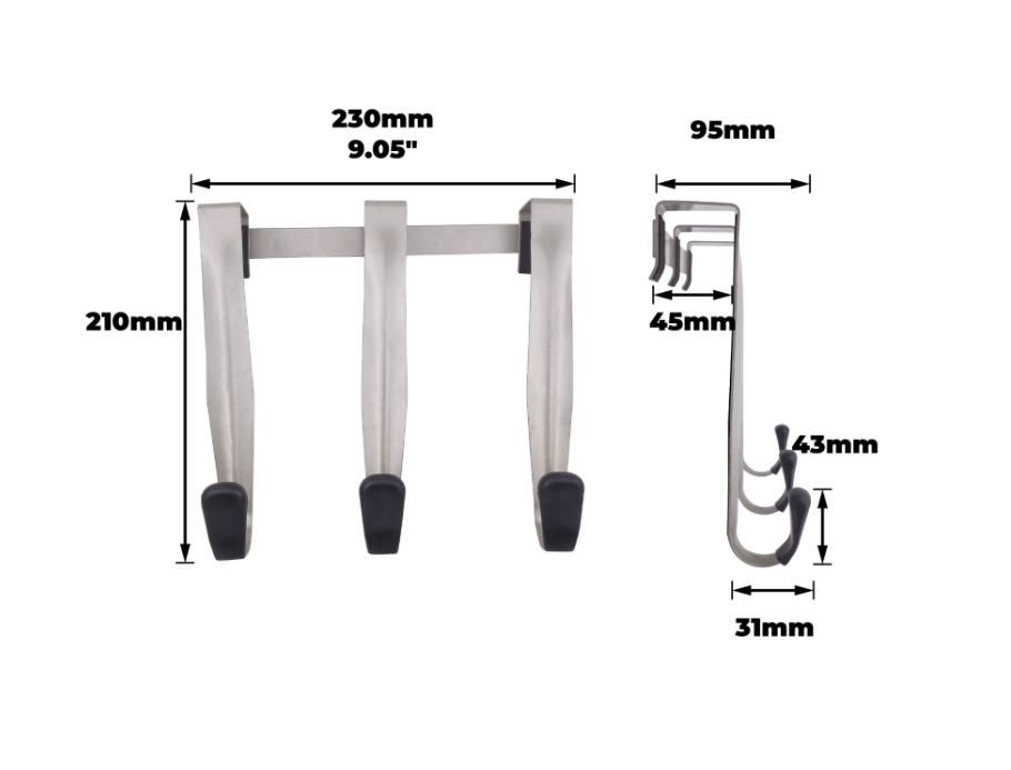 OTD HOOK 3 HOOK SATIN CHROME is an over door hanger system designed for DIY enthusiasts. Crafted from steel, this product features a sturdy grey board and three robust black hooks with a satin chrome finish. With its precise engineering and reliable components, it delivers a practical solution for optimising space and organising essential items effectively.Detailed