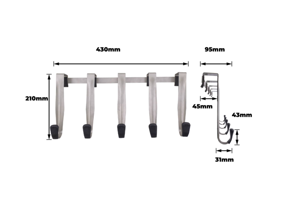 - Five hooks enable efficient organisation and enhanced storage.
