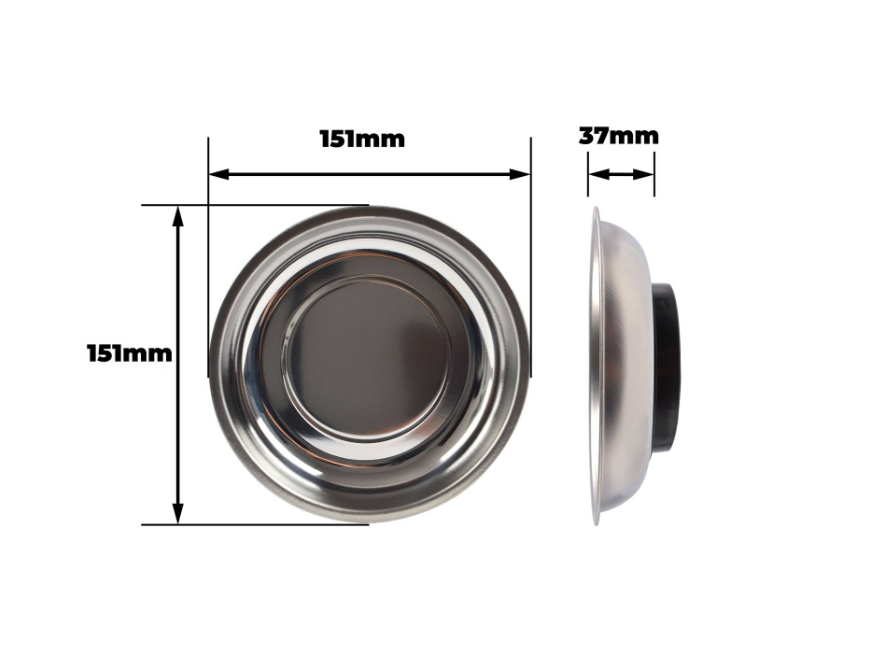 MAGNETIC HOLDER 150MM SS BOWL is an innovative magnetic holding solution designed for DIY enthusiasts seeking reliable performance. Constructed from ferrite, stainless steel 430 and rubber, it delivers a solid 38N pull force in a sleek silver and black finish. Its special shape facilitates secure mounting for varied applications, from workshop organisation to technical installations. A practical accessory built to withstand everyday rigours and enhance project efficiency.Detailed