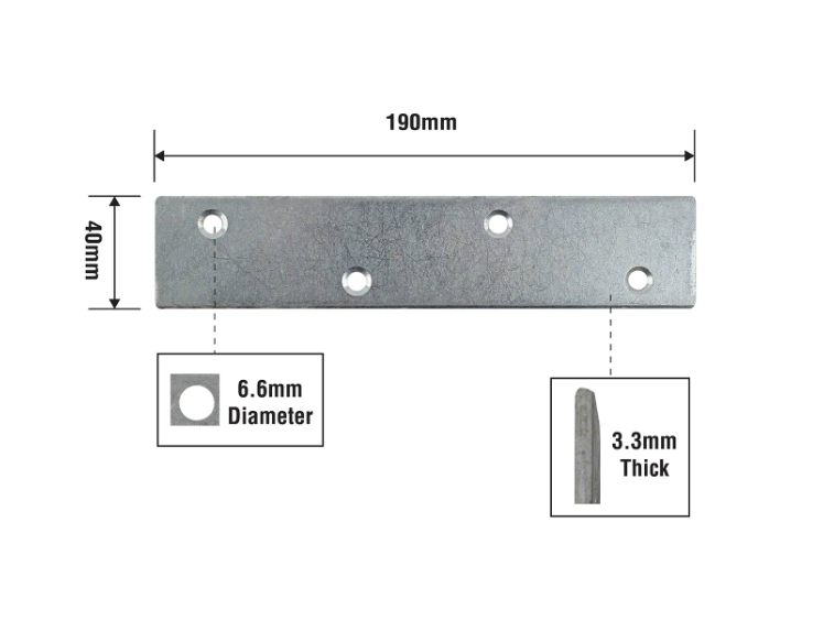 We offer a robust solution for joining and reinforcing structural elements with the Mending Plate, measuring 190x40mm and constructed from durable zinc-plated steel. This mending plate is ideal for DIY enthusiasts looking to strengthen joints in various applications, ensuring long-lasting stability and support for both indoor and outdoor projects.Detailed