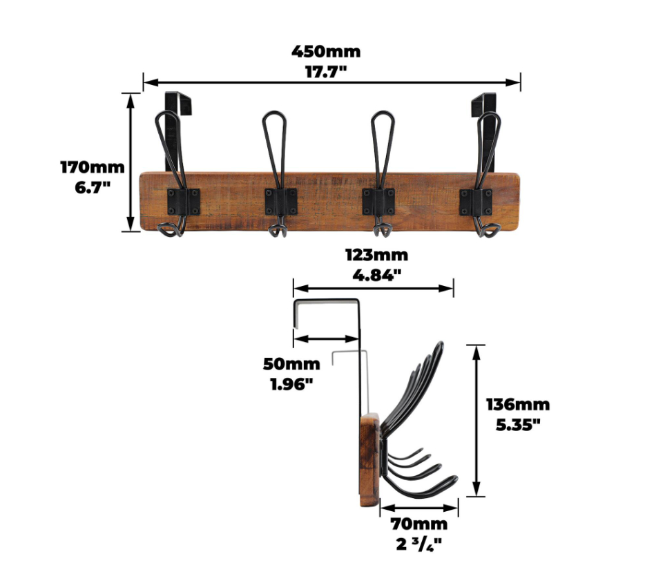 Rustic Over the Door 4 Hook 450mm x 70mm