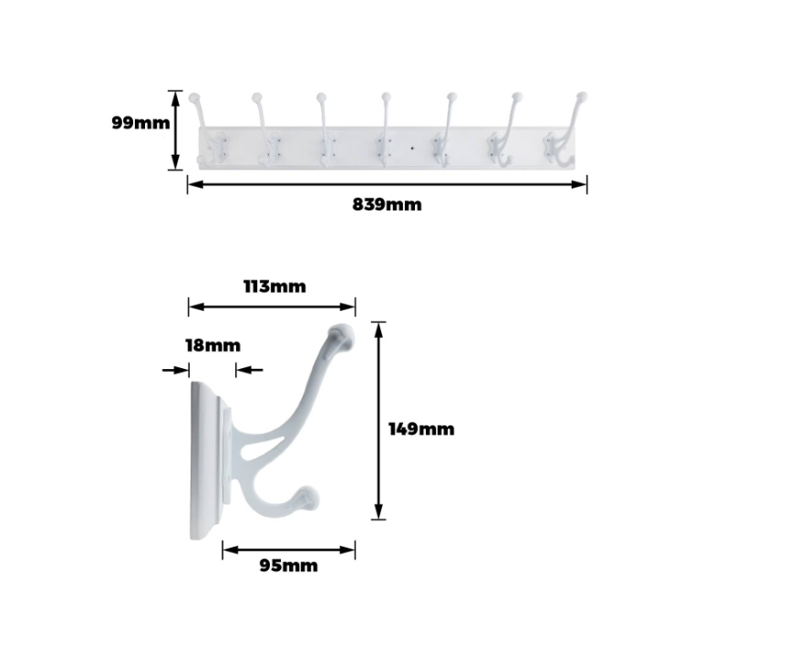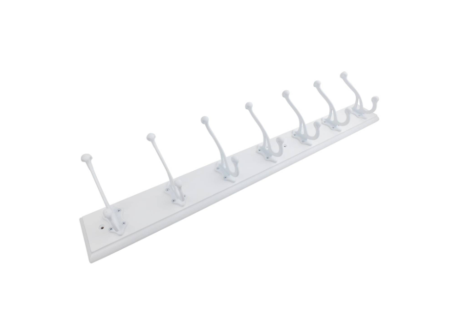 Hookrail - 7 H&C Ant. White on White Board FSC100% provides efficient storage solutions for DIY enthusiasts. This robust wall-mounted fixture features 14 white hooks arranged on an FSC-certified white board with durable steel construction. Ideal for organising tools, keys and accessories in both workshop and modern domestic settings, it combines practicality with sustainability. Its straightforward design and technical specifications deliver lasting performance and reliable support for everyday use.Detailed