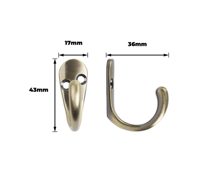 Antique Brass Robe Hook PK5 is a versatile wall fixture designed for DIY home improvement projects. Constructed from durable zinc and finished in an elegant antique brass tone, this set of five hooks provides a reliable solution for hanging robes, coats and towels. Its robust design offers technical precision for secure installations in bathrooms, cloakrooms or utility rooms. Ideal for enthusiasts seeking functional hardware with a classic appearance, this fixture delivers both practicality and durability.Detailed