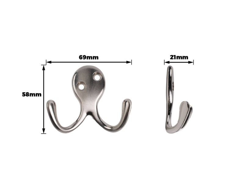 Double Robe Hook Satin Nickel PK2 is a decorative hook set designed to combine functionality and contemporary style for various hanging applications. Constructed from durable aluminium with a satin nickel finish, these four hooks offer a secure and elegant solution for organising robes and accessories in bathrooms, bedrooms or corridors. Ideal for DIY projects, they deliver reliable performance and an easy installation experience, meeting the technical expectations of knowledgeable buyers.Detailed