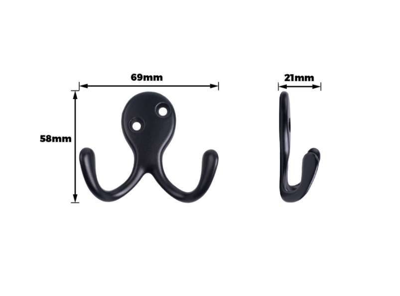 Double Robe Hook Black PK2