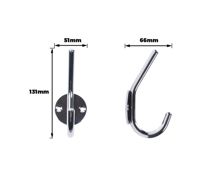 Hat & Coat Hook Round Base Polished Chrome PK1 – a pair of sleek, decorative hooks designed for hanging hats and coats. Crafted from lightweight aluminium with a polished chrome finish, these hooks offer a durable and stylish solution for home or work environments. Their practical design makes them ideal for DIY projects, ensuring both functionality and modern aesthetic in any interior space.Detailed