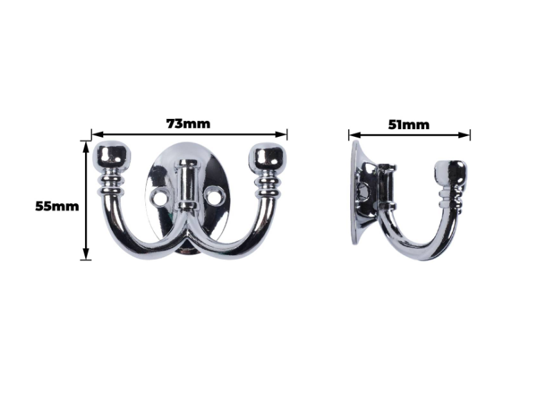 Ball End Double Hook Oval Base Pol Chrome PK1 is a pair of decorative hooks designed for practical everyday use. Crafted from aluminium with a polished chrome finish, these hooks offer a robust and stylish solution for hanging items. Their dual hook design provides flexibility for a range of DIY projects, allowing precise, secure installations. Ideal for retail and online buyers appreciating technical precision and quality craftsmanship in home improvements.Detailed