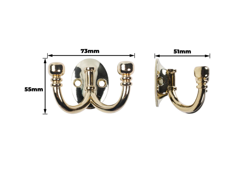 Ball End Double Hook Oval Base Polished Brass PK1 is a pair of decorative hooks designed for precision DIY renovations and interior enhancements. The robust aluminium construction with a polished brass finish offers durability and a refined appearance, ensuring reliable support. Set on an oval base, these hooks provide stability for secure mounting. They are a practical choice for enthusiasts who value technical specifications and effective design.Detailed