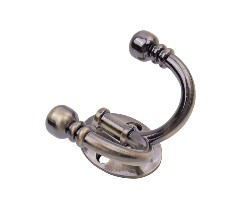 Ball End Double Robe Hook - Antique Brass