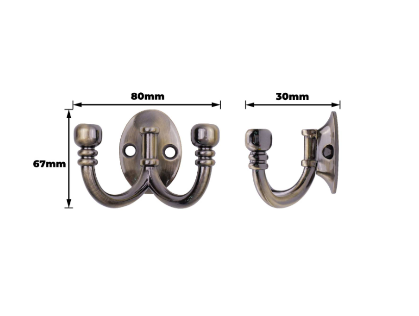 Ball End Double Robe Hook Antique Brass is a pair of robust robe hooks designed for easy installation. Perfect for DIY enthusiasts upgrading wardrobes or utility spaces, these hooks blend practicality with style. Constructed from durable aluminium and finished in antique brass, they offer a reliable solution for hanging robes and lightweight garments. Suitable for residential and commercial projects, this dual hook design delivers both technical precision and enduring functionality.Detailed