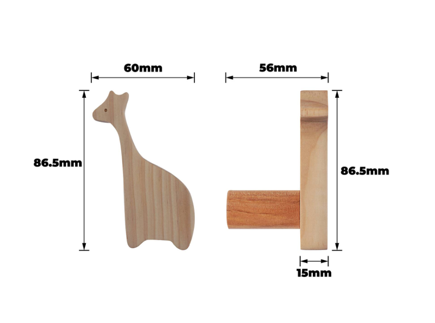 Kids Animal Hook - Giraffe FSC100% is a uniquely designed wall hook that brings both whimsy and functionality to any space. Crafted with sustainability in mind, this item is an ideal choice for DIY enthusiasts seeking practical, environmentally responsible products. Its secure mounting system and creative design make it perfect for organising light items in children’s rooms, craft workshops or creative home projects.Detailed