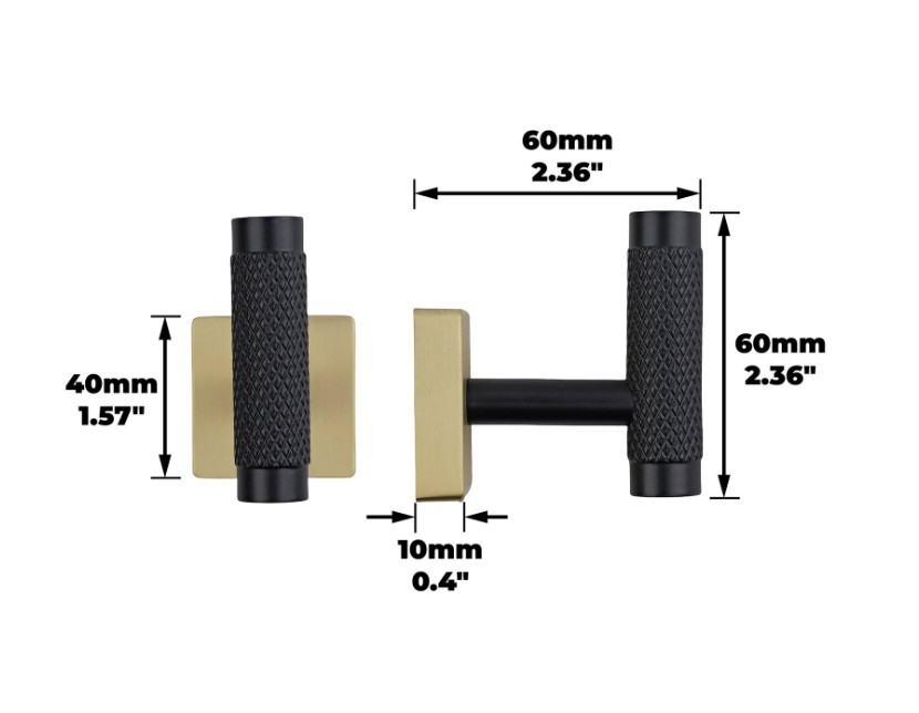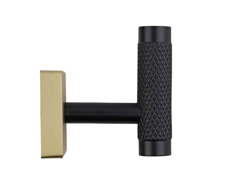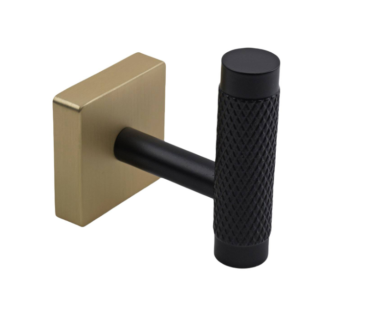 Square Plate Knurled Hook - Black & B/Brass