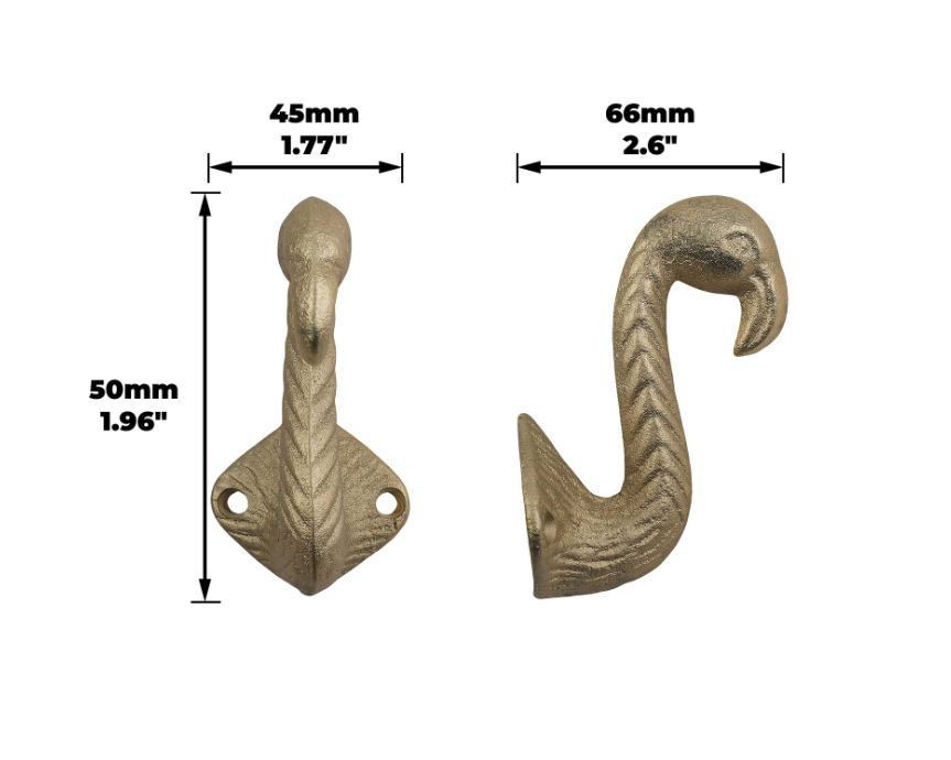 This distinctive wall hook features a stylised flamingo design in a brushed brass finish. Ideal for organising keys, coats, and accessories, it offers both decorative appeal and practical functionality. Designed for DIY enthusiasts, its robust construction ensures longevity while the simple installation process allows for easy integration into any interior. Enhance your space with a piece that combines creative design with everyday practicality.Detailed