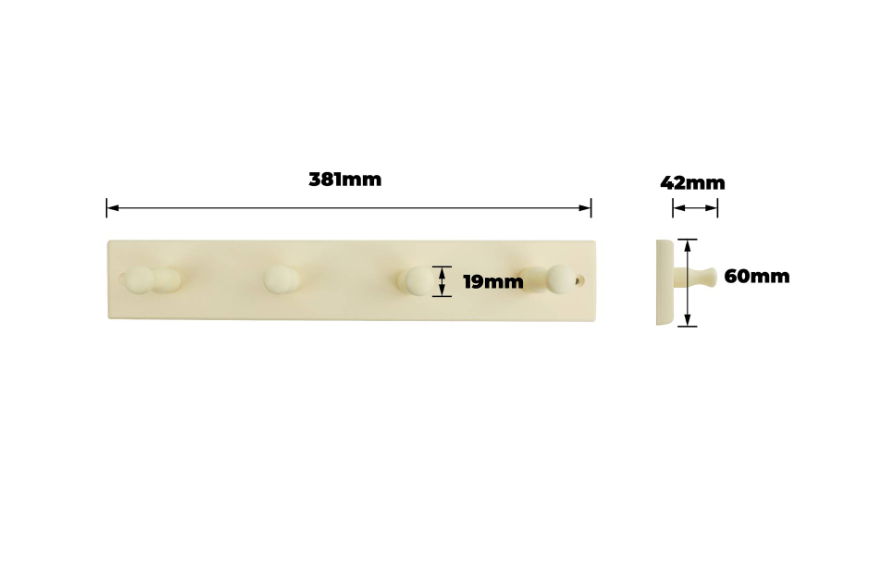 Hookrail - Cream w/ Wood Peg Hooks 4 FSC100%